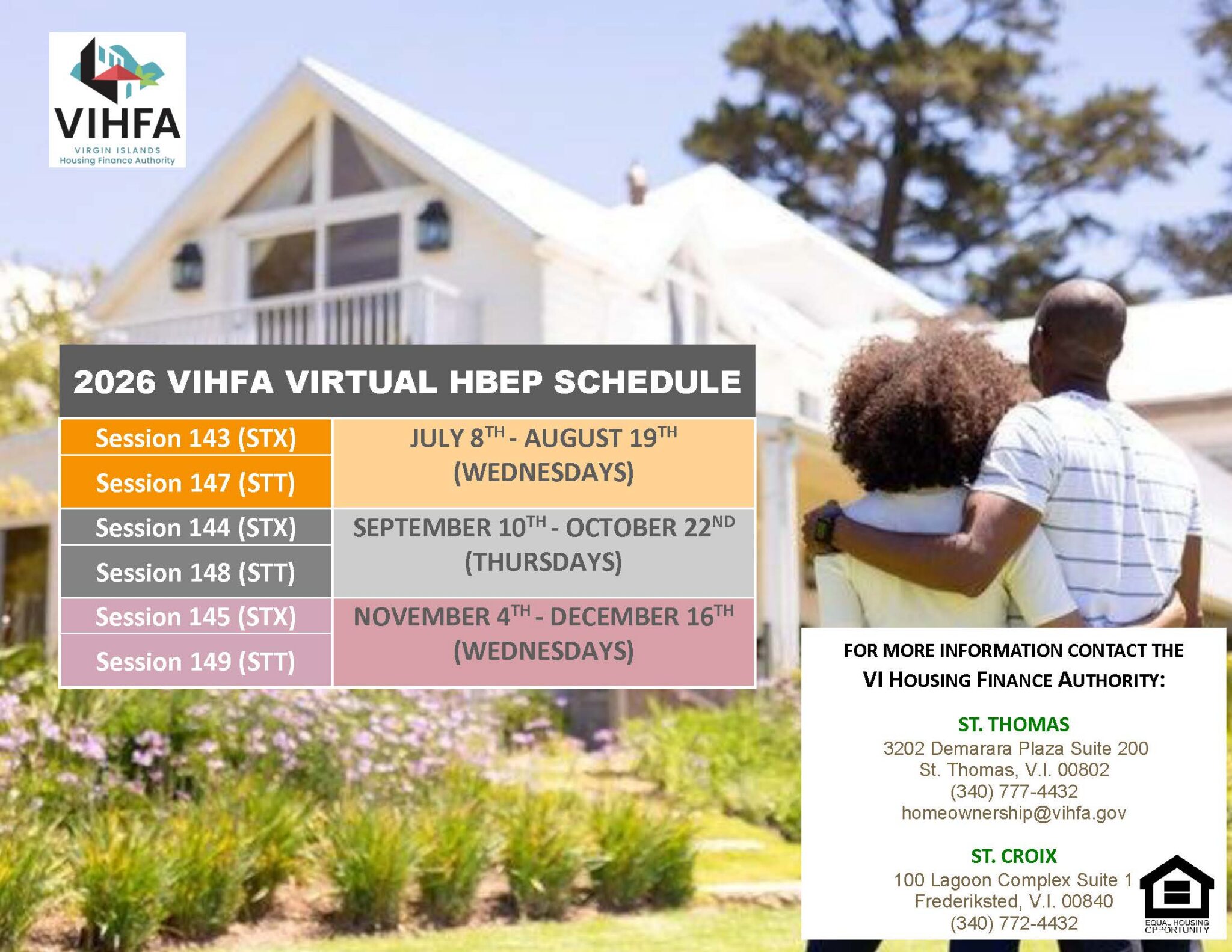 - Must attend VIHFA’s Home Buyer’s Education Program and earn a Certificate of Completion.